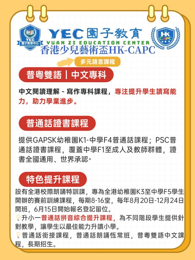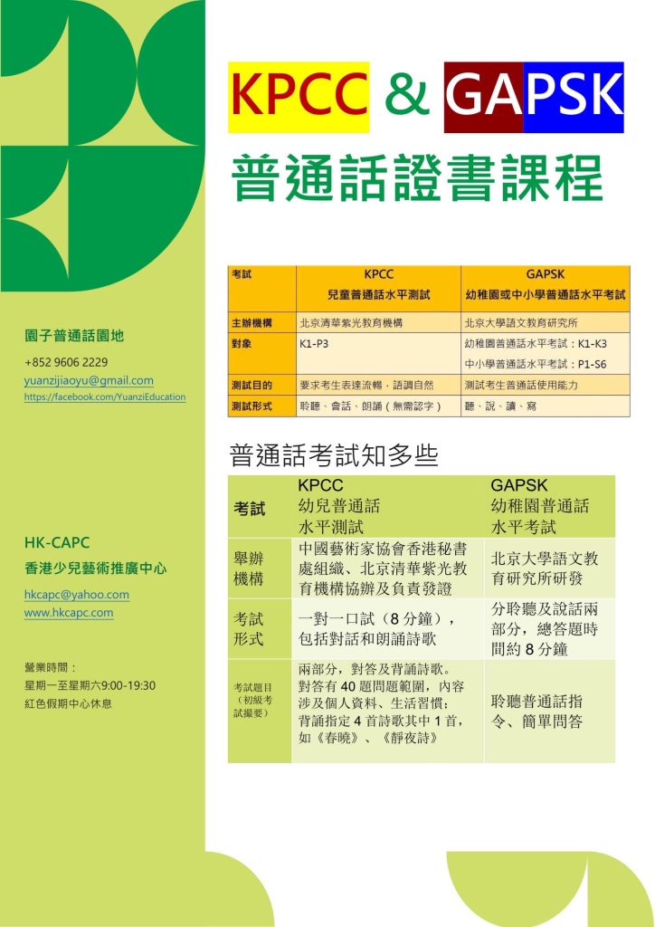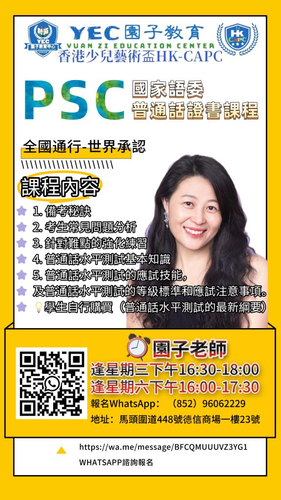 HKPSC-P小學普通話證書考試⏬報名