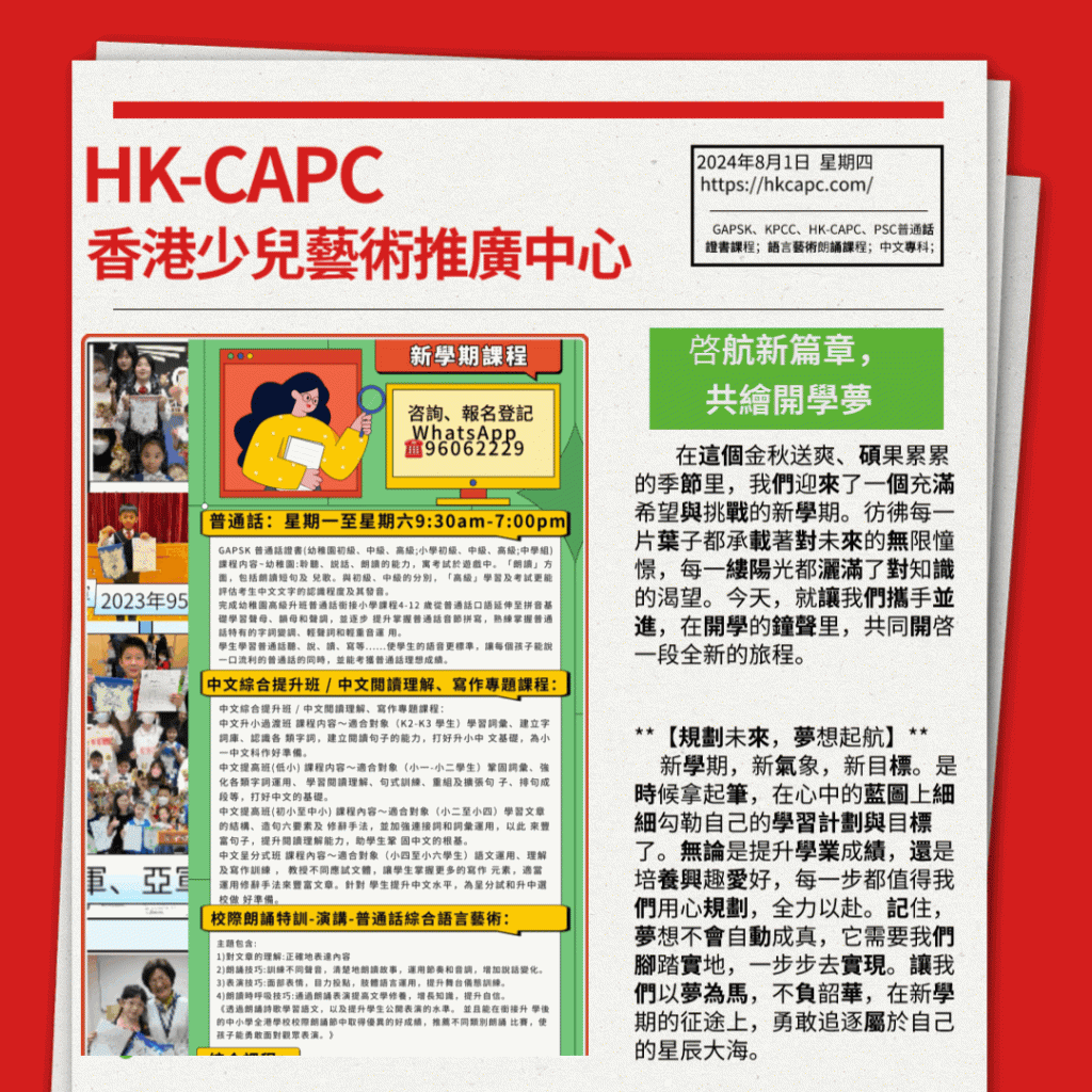 香港少兒藝術推廣中心 HK-CAPC園子教育聯合成立,自 2018 年成立至今,遵循 【多元文化,厚積薄發,未來自主】之教學理念,倡導並推廣普通話教學。